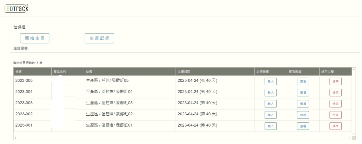 eDTrack记录每生产缸位置及生产日数